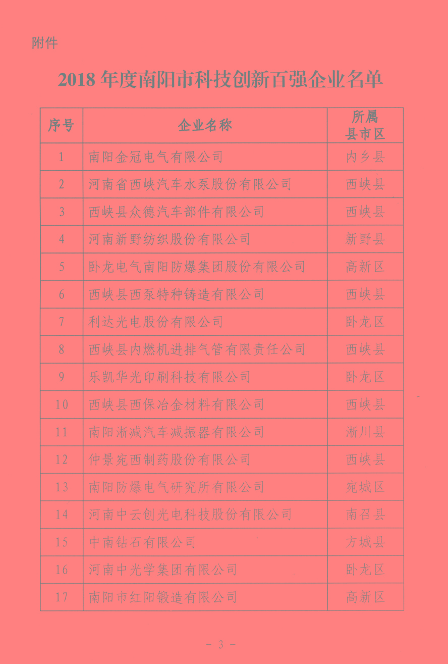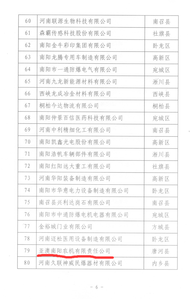 為深入實施創(chuàng)新驅(qū)動發(fā)展和“兩輪兩翼”發(fā)展戰(zhàn)略,增強全市企業(yè)自主創(chuàng)新能力和核心競爭力,引領(lǐng)促進企業(yè)成為技術(shù)創(chuàng)新主體,按照《南陽市科技創(chuàng)新百強企業(yè)考核評定辦法》要求,亞澳農(nóng)機等6家企業(yè)榮獲此榮譽。