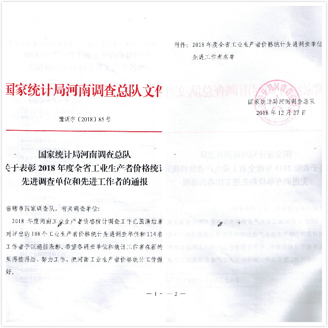 日前,自國(guó)家統(tǒng)計(jì)局河南調(diào)查總隊(duì)獲得消息,亞澳農(nóng)機(jī)獲得2018年度全省工業(yè)生產(chǎn)者價(jià)格統(tǒng)計(jì)先進(jìn)調(diào)查單位。