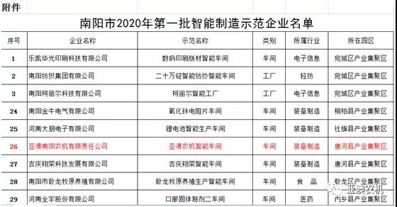 根據(jù)《河南省智能制造和工業(yè)互聯(lián)網(wǎng)發(fā)展三年行動(dòng)計(jì)劃(2018—2020年)》(豫政〔2018〕14號(hào))文件要求,南陽市篩選出的A類企業(yè)名單,是符合集聚區(qū)產(chǎn)業(yè)發(fā)展方向、資源利用效率高、質(zhì)量效益好的企業(yè),是轉(zhuǎn)型發(fā)展攻堅(jiān)的引領(lǐng)力量,也是最有條件和能力實(shí)施智能化改造的先導(dǎo)群體。將作為河南省產(chǎn)業(yè)集聚區(qū)首批智能化改造推薦企業(yè)。