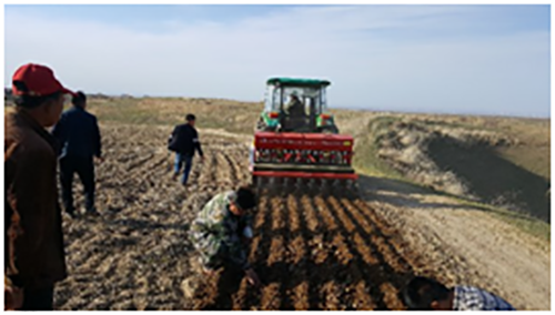 為推動保護性耕作技術(shù)的進一步深入開展,充分展示保護性耕作的優(yōu)特點,由自治區(qū)農(nóng)牧機械化推廣總站、奇臺縣農(nóng)機推廣站、吉布鎮(zhèn)農(nóng)機管理站和西安亞澳農(nóng)機股份有限公司多方合作,在奇臺縣吉布庫鎮(zhèn)天河四村確定實施三年百畝保護性耕作示范田,主要采取的技術(shù)措施:2016年秋季采用200馬力以上大型拖拉機帶動1S-300深松犁在山旱地進行深松作業(yè),深松深度達到40厘米以上,深松作業(yè)覆蓋率50%以上,2017年春季采用西安亞澳農(nóng)機股份有限公司最新研制的免耕播種機一次性完成破茬、開溝、種肥分施、覆土、鎮(zhèn)壓作業(yè),完成深松+免耕播種春小麥170畝,同時在同等土壤肥力、種肥相同的條件下,又建立對比試驗田2個(秋季深松+常規(guī)播種試驗田1個,秋翻作業(yè)+常規(guī)播種試驗田一個),為今后不同模式下經(jīng)濟效益對比分析打下良好的基礎(chǔ)。