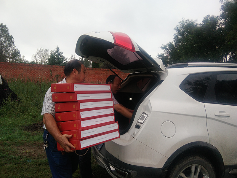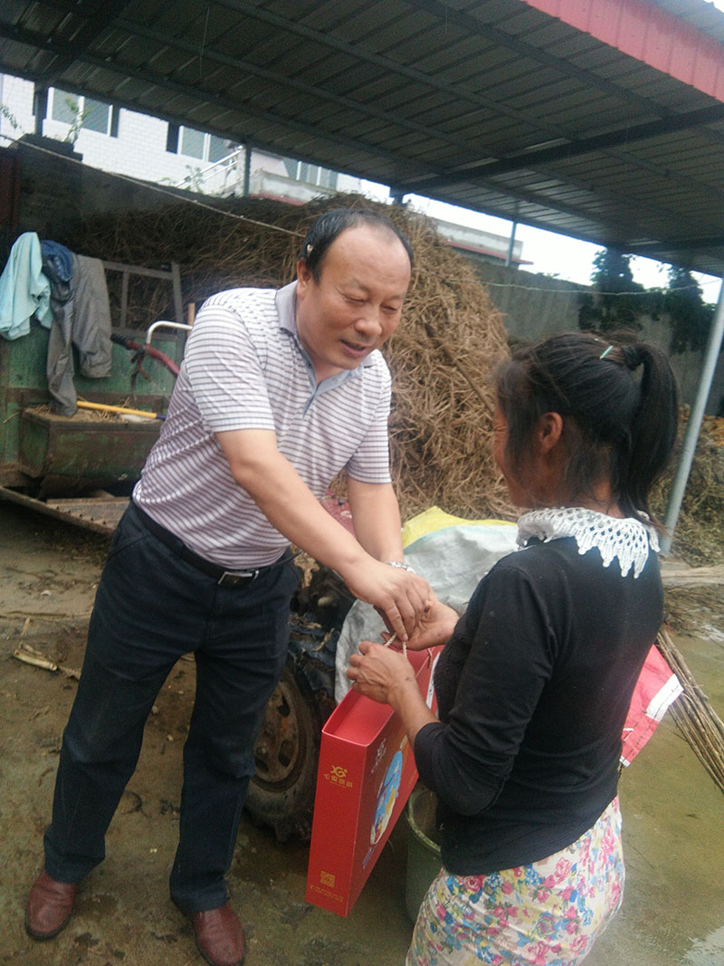 淫雨霏霏,在國慶、中秋雙節(jié)來臨之前,2017年9月25日下午,亞澳南陽農(nóng)機有限公司總經(jīng)理助理郭靖懷著滿滿的熱情與關(guān)懷,帶著月餅禮盒,再次來到大河屯鎮(zhèn)申沖村開展扶貧慰問工作。